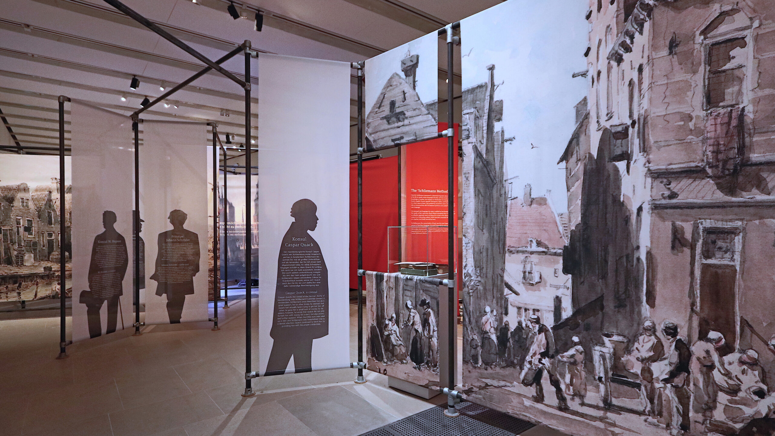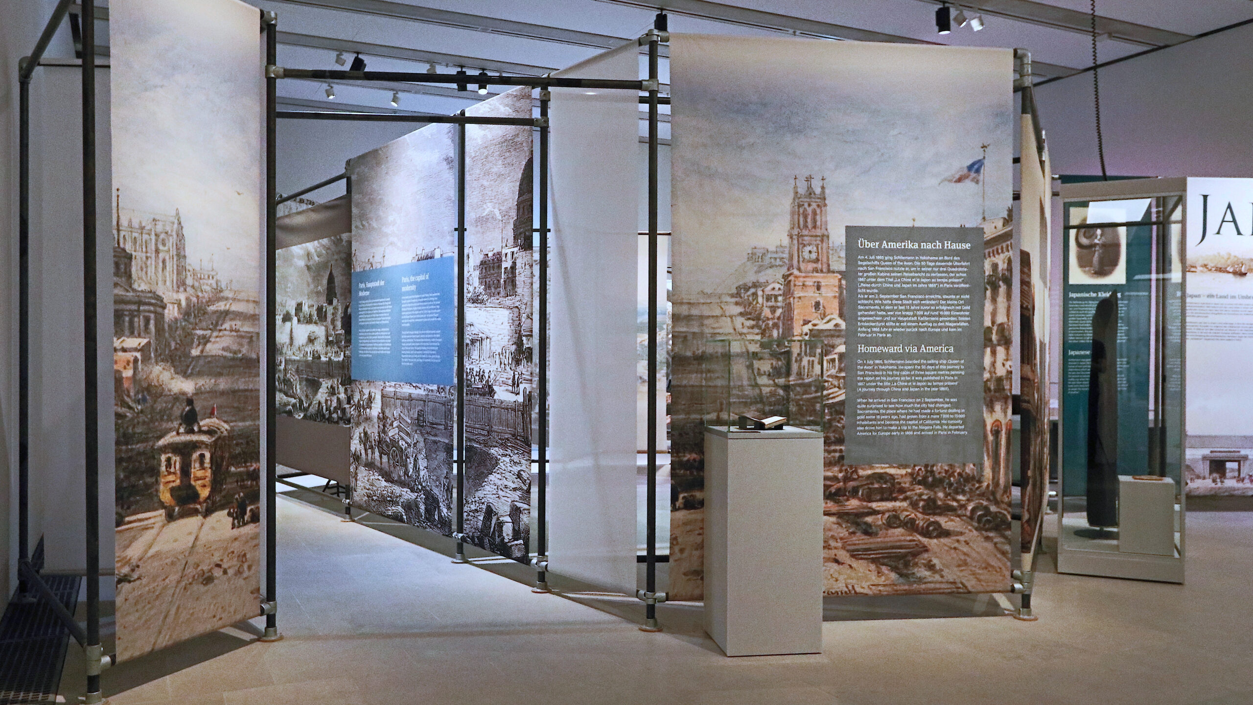 Herstellung u. Lieferung eines Ausstellungssystems, Architektur, Grafik, Licht. Vitrinenplanung und Einrichtung. Präsentation der Biografie, Reisen und Lebensumstände in der JSG. Präsentation der wichtigsten Funde und deren Zusammenhänge im NM. Architekt: Harry Vetter Team, Grafikumsetzung: Martina Bolz, Fotos: Harry Vetter, Tomkin GmbH