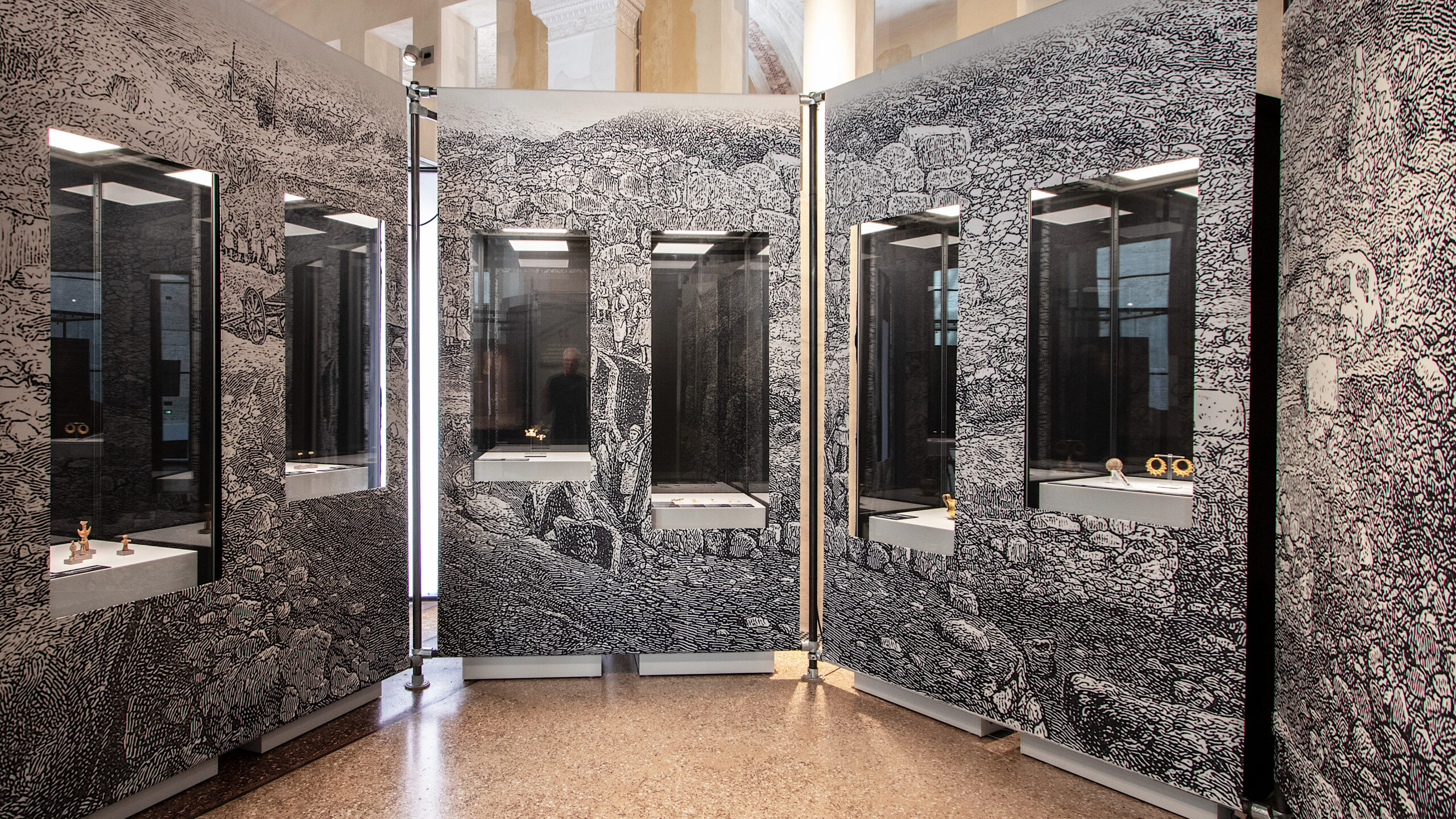 Großvitrinen, Tischvitrinen und Rauminszenierungen, begehbare Installationen