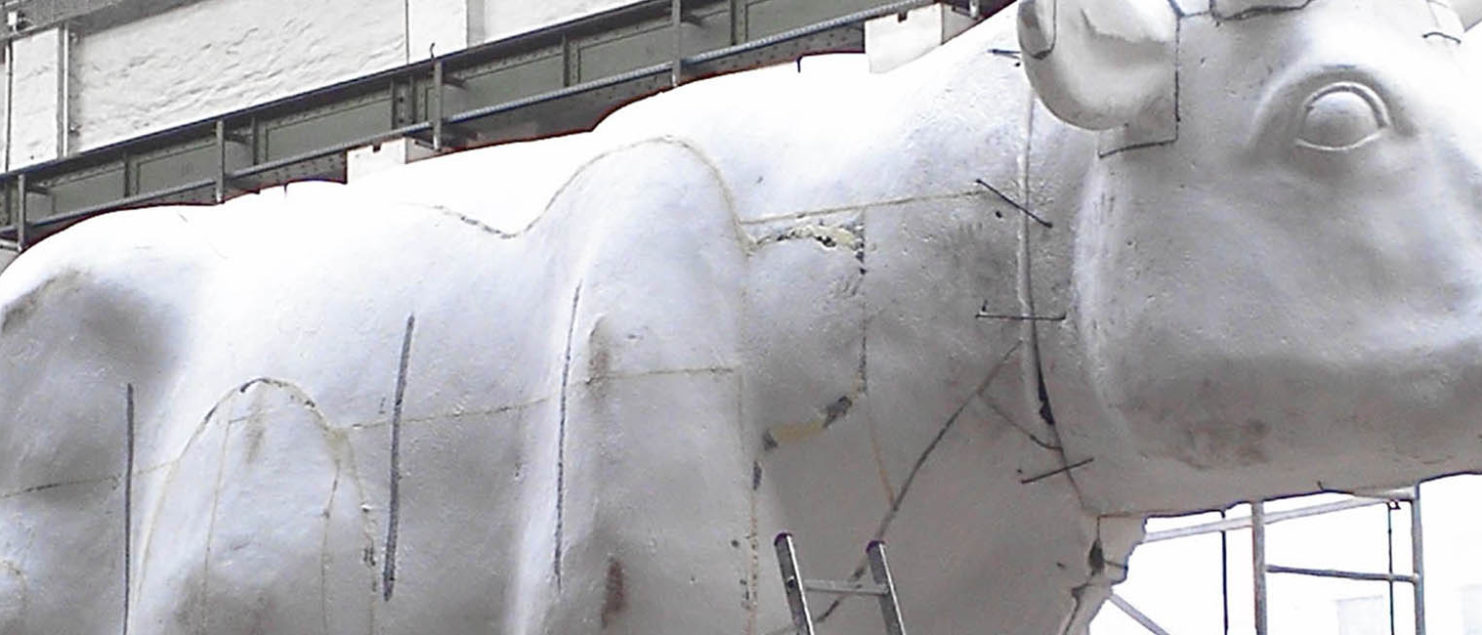 Bewegliches Großobjekt, plastische Arbeiten, Herstellung Milka-Kuh, Dimension: 4,20 x 6 m x 1,8 m (HxLxT)